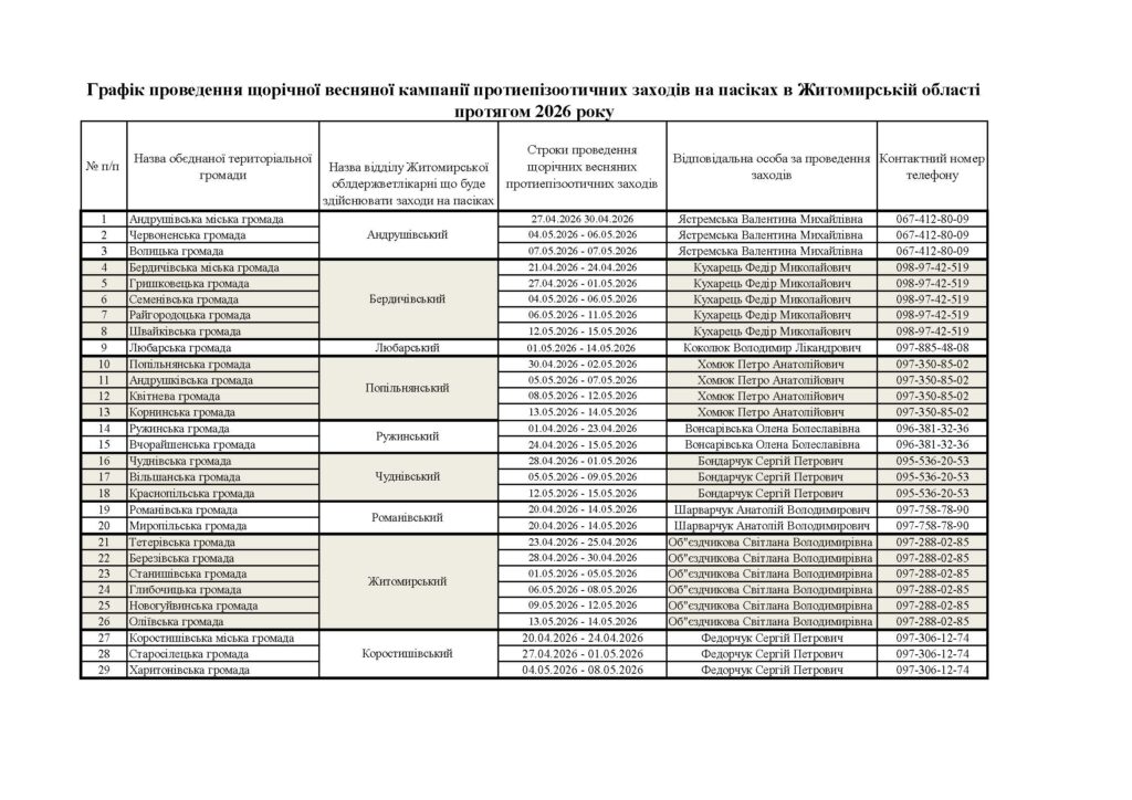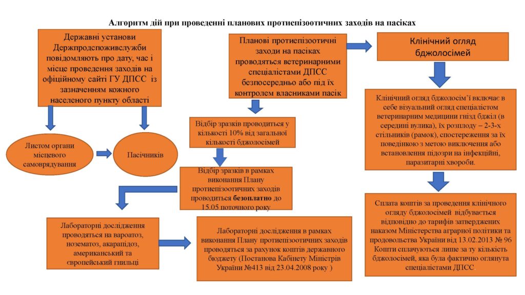 Відповідно до Графіку проведення щорічної весняної кампанії протиепізоотичних заходів на пасіках в області, щорічний весняний облік пасік в Андрушівській міській громаді буде здійснюватись в період з 27.04.2026р. до 30.04.2026р. Даний захід проводиться з метою запобігання поширенню інфекційних захворювань та підтвердження ветеринарно-санітарного стану пасік. Фахівці ветеринарної медицини проводять клінічний огляд: оцінка стану матки, розплоду та сили бджолосім’ї;  відбір підмору та розплоду для лабораторних досліджень на: варрооз, нозематоз, акарапідоз (відбирається від 10% сімей), європейський та американський гнильці (відбирається від 1% сімей). Відбір зразків а також проведення лабораторних досліджень в рамках виконання Плану протиепізоотичних заходів проводиться безоплатно за рахунок коштів державного бюджету. При проведенні клінічного огляду власник пасіки сплачує кошти лише за ту кількість бджолосімей, яка була фактично оглянута ветеринарним спеціалістами Держпродспоживслужби. Якщо зареєстрована та паспортизована пасіка не увійшла до числа пасік де будуть відбиратися зразки для подальшого проведення планових лабораторних досліджень на хвороби бджіл, у такому випадку проводиться лише клінічний огляд бджолиних сімей, результати огляду вносяться в додаток до паспорта а також робиться відмітка про те що, пасіка знаходиться на території благополучній щодо хвороб бджіл (враховуються результати досліджень тих пасік, що увійшли до плану моніторингу)