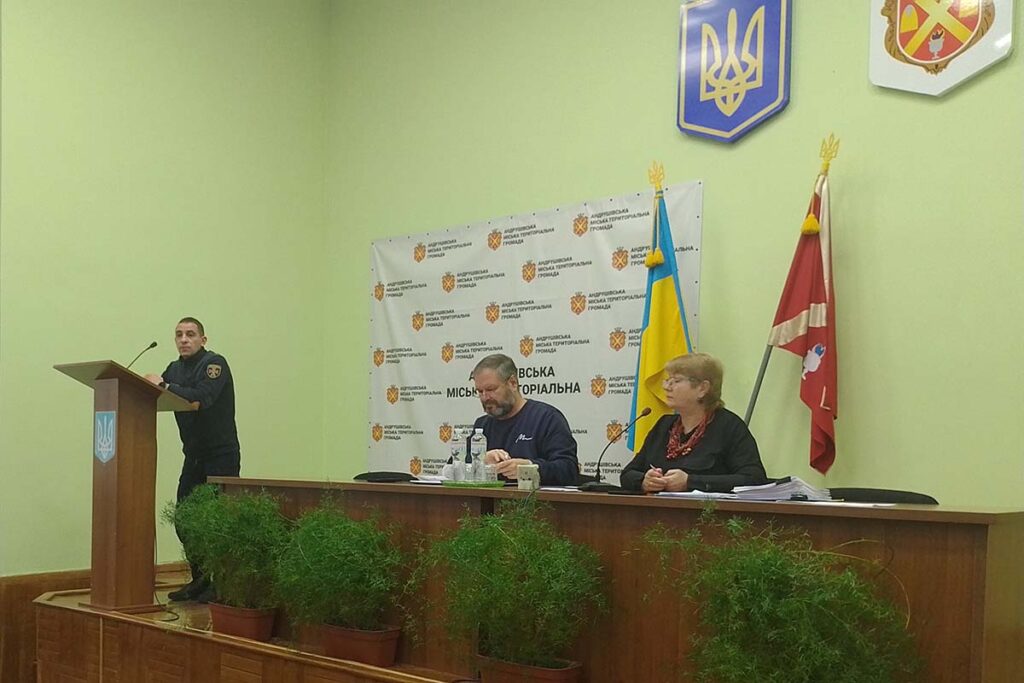 По питанню забезпечення засобами захисту органів дихання від небезпечних хімічних речовин непрацюючого населення, яке проживає в прогнозованій зоні хімічного забруднення, працівників ТОВ «Андрушівський маслосирзавод» та прилеглих підприємств, установ та організацій, доповідав Головний інспектор відділу №2 Бердичівського районного управління цивільного захисту та превентивної діяльності ГУ ДСНС України у Житомирській області Ігор Гресєв. Про вжиття заходів з покращення стану з забезпеченням засобами захисту органів дихання від небезпечних хімічних речовин на підприємстві доповів представник  ТОВ «Андрушівський маслосирзавод» Ігор Маліновський.
